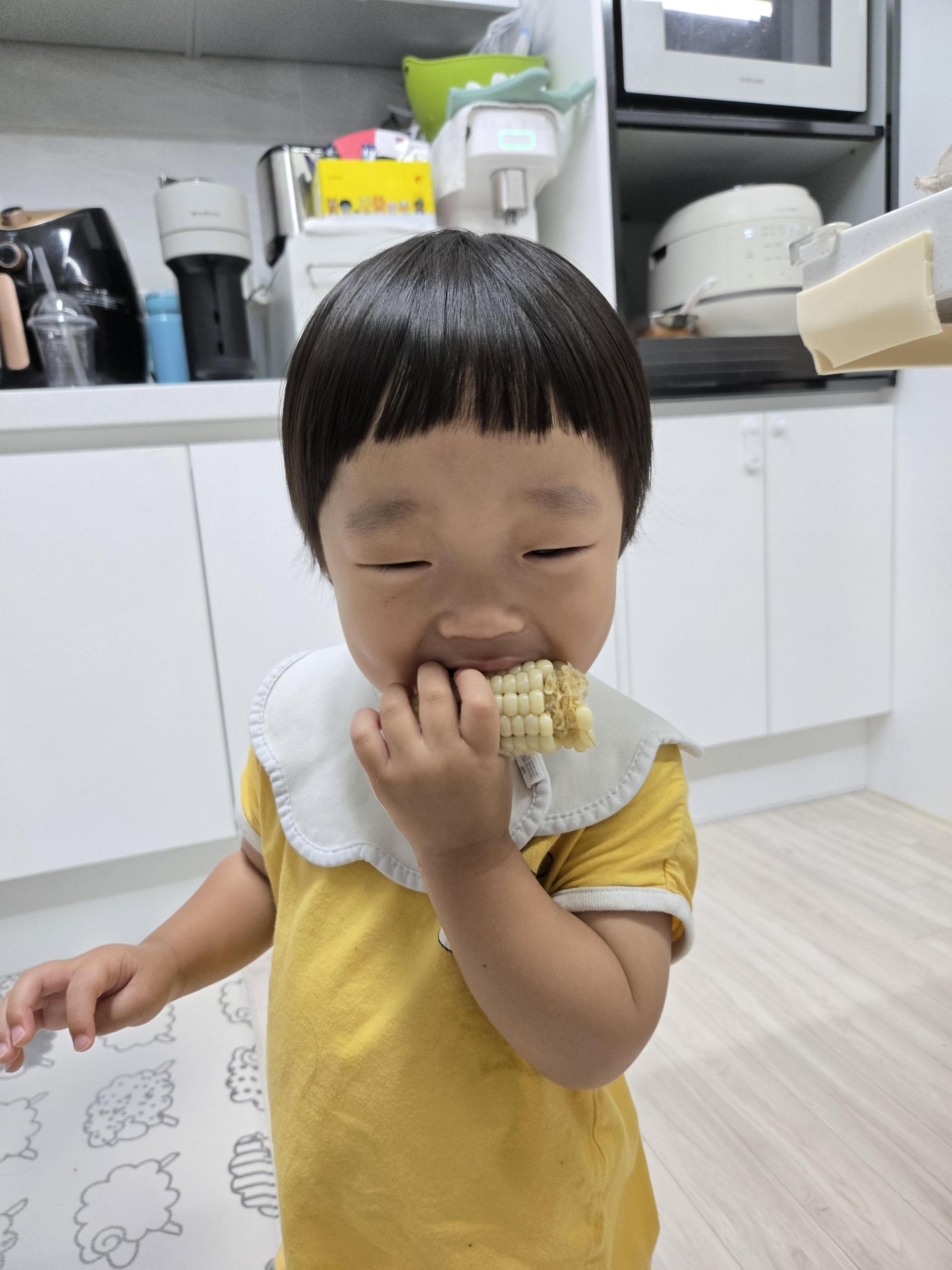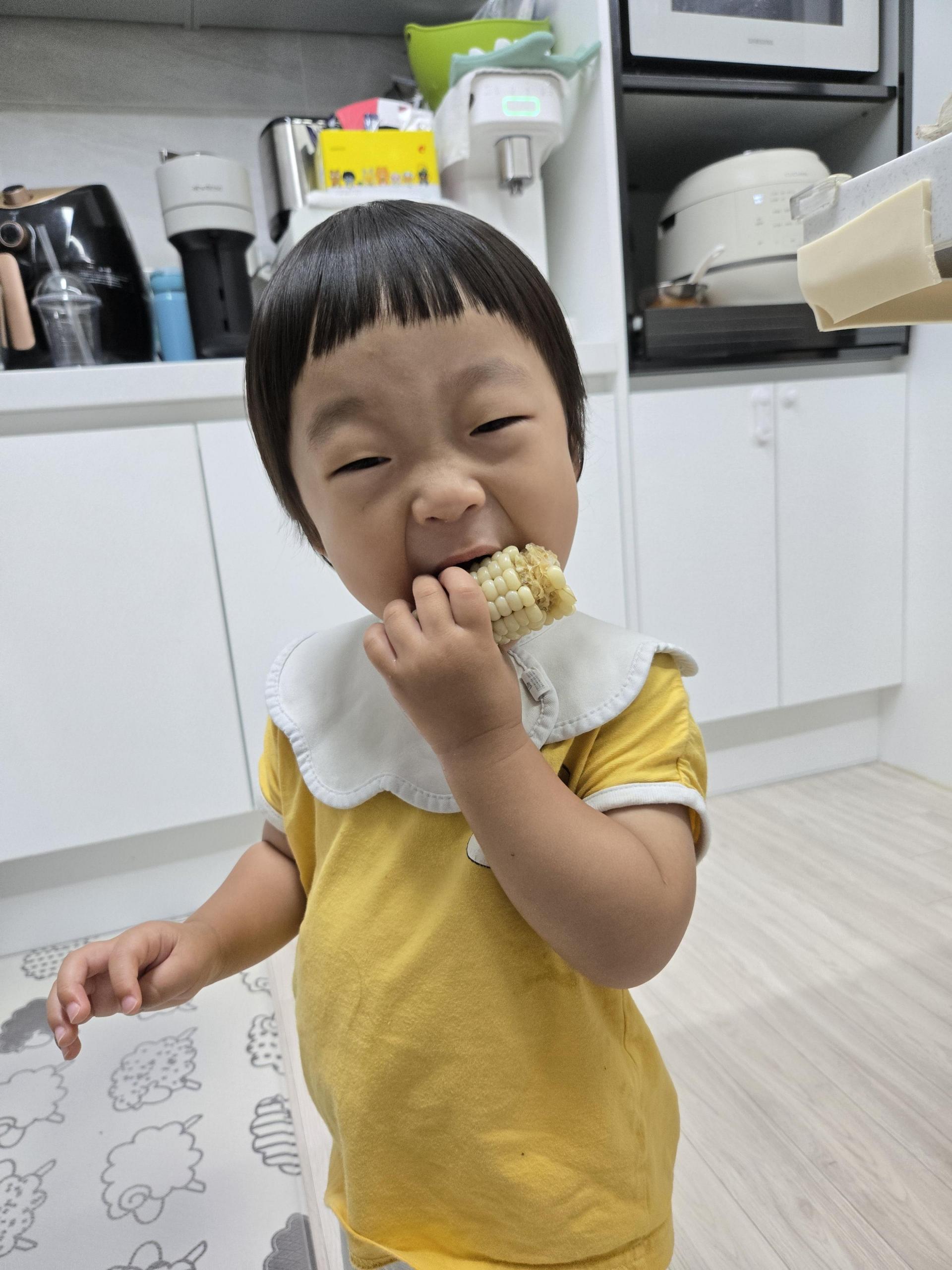 있는힘껏 입벌려 옥수수 먹으려고 하는 사진이에요